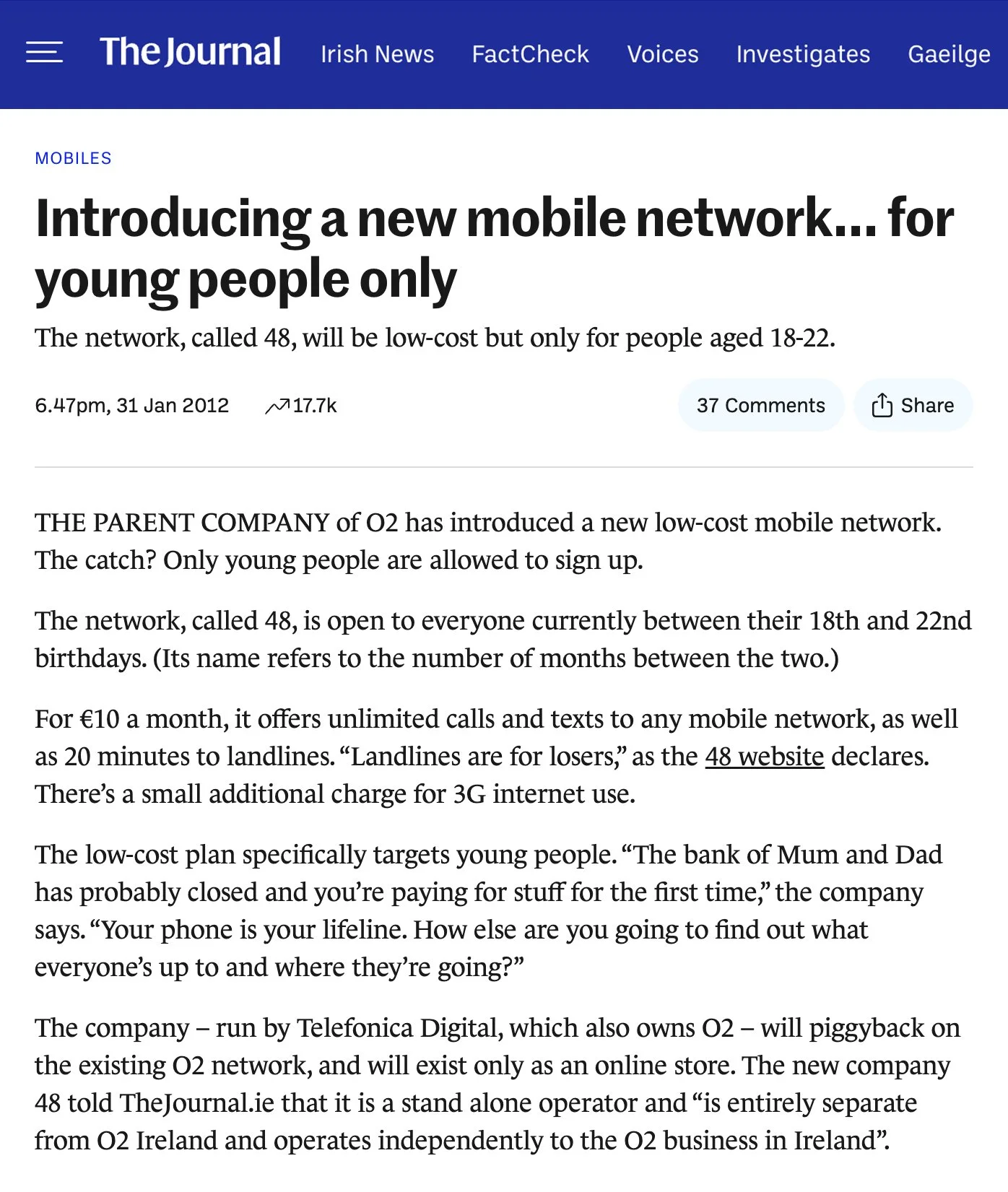 02 had a problem - they were seen as the safe, boring, network. They could not attract a younger audience. To counter this, they created a new brand aimed solely at 18-22 year olds. We helped launch the brand with a campaign that spoke directly to their new audience.