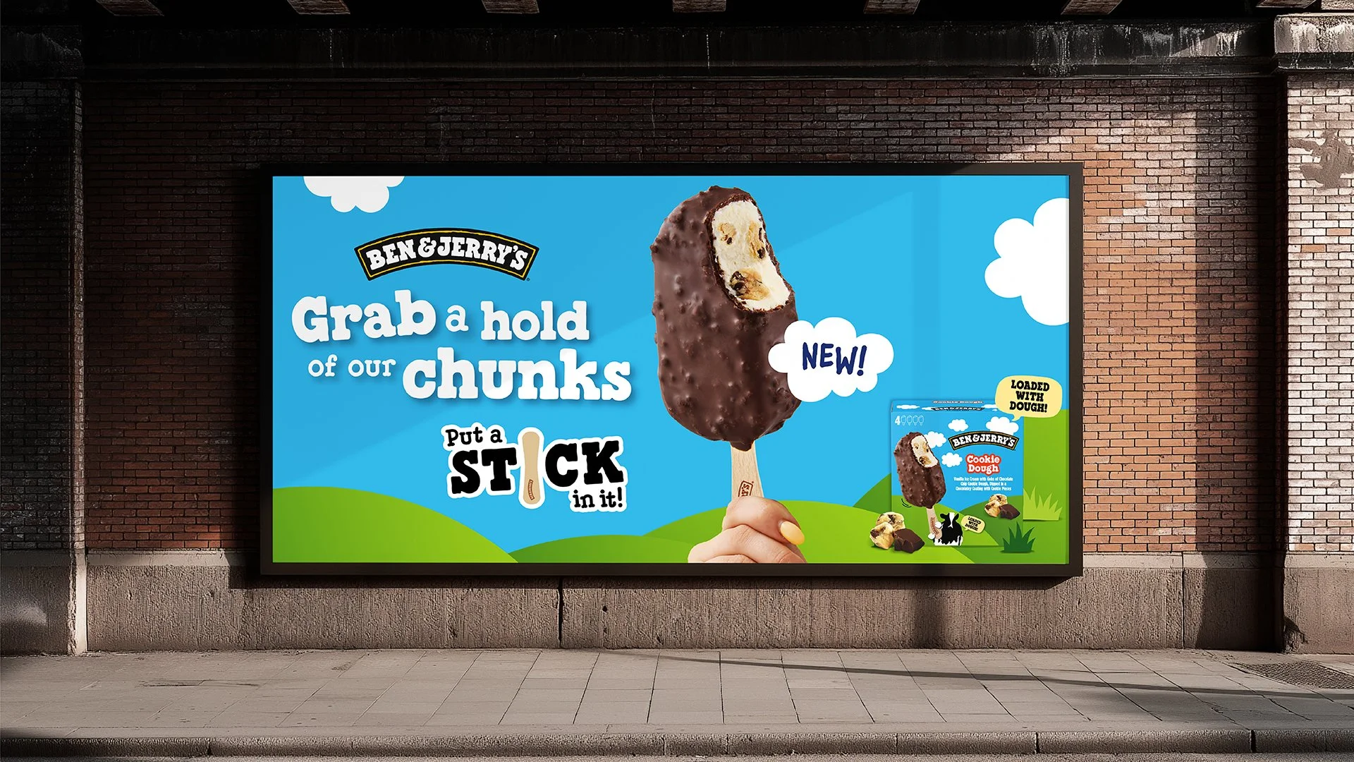 With new Ben & Jerry’s ice cream bars you can bite into your favorite ice cream while getting on with your hectic schedule. The world never stops and neither should your ice cream! Put a Stick in it is a rally call to get on with your life. You have errands to run, chores to finish, people to meet? Put a Stick in it. We developed a full creative guidelines for the campaign including direction for OOH, retail, digital and social.