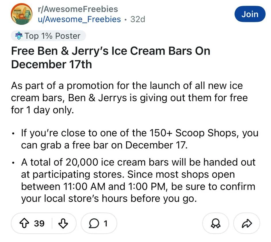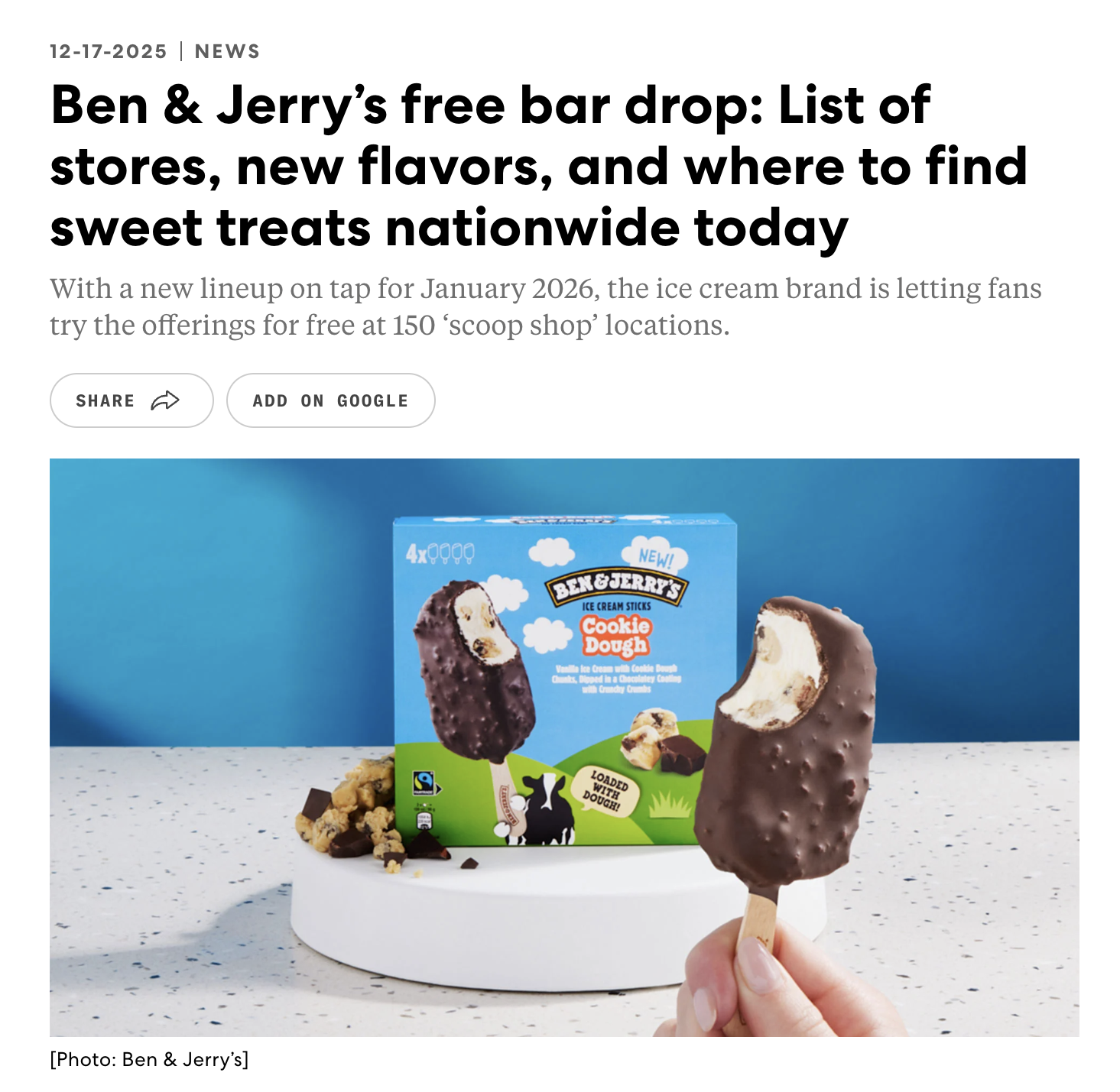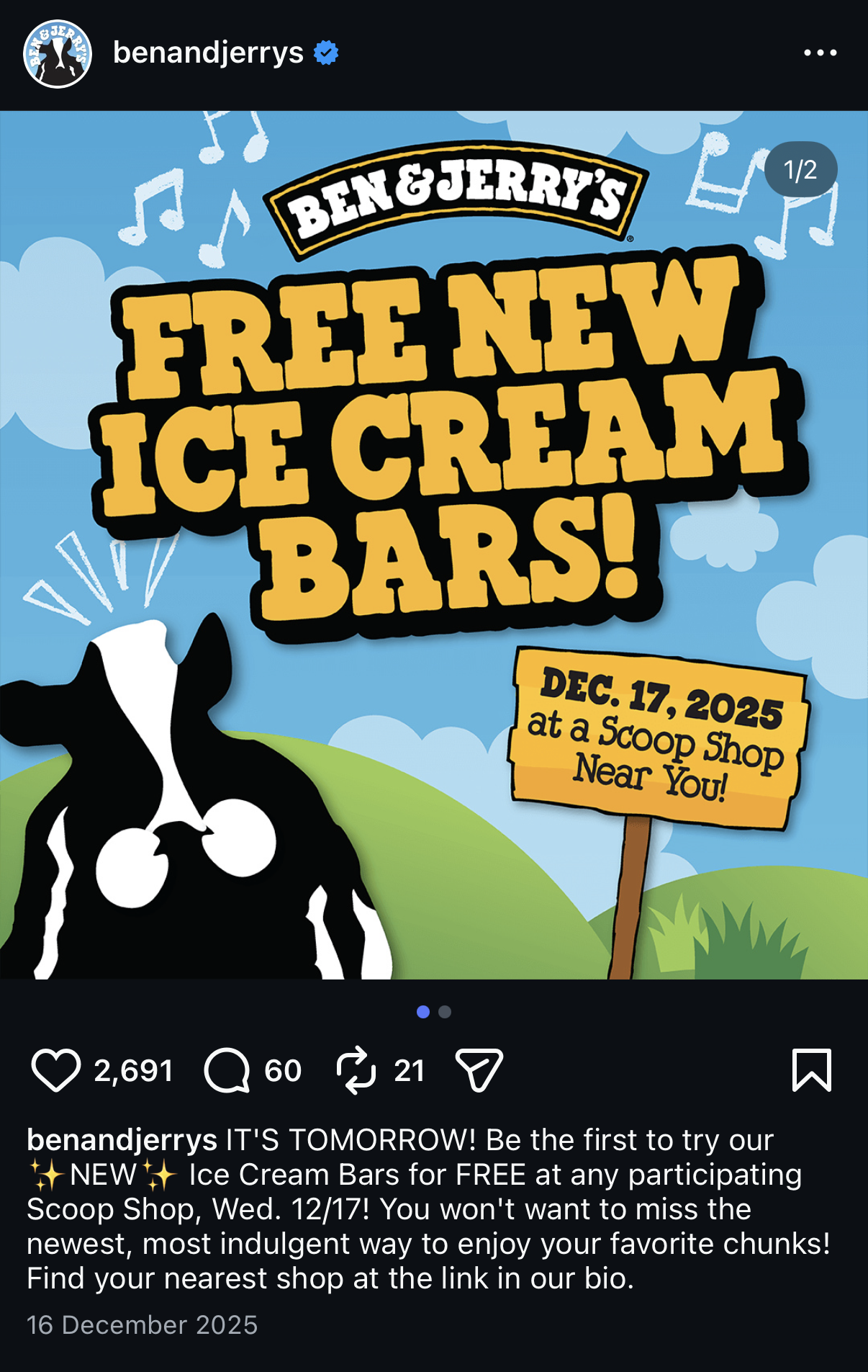 Continuing the Ben & Jerry’s tradition of ‘Free Cone Day’, we extended the good vibes by creating a ‘Free Bar Drop’.