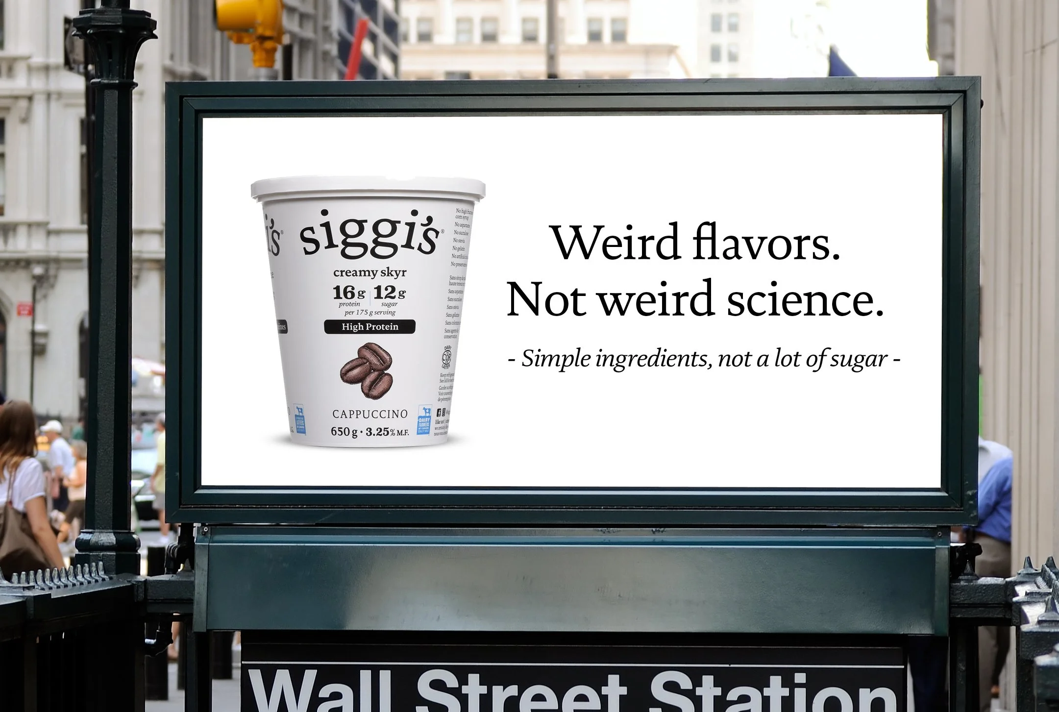 Siggi’s is an Icelandic skyr. It does not contain any artificial preservatives, thickeners, sweeteners, flavours or colours. We were challenged to launch the brand in America. We needed to launch the product into a market that was heavily dominated by Greek yogurt. So we decided to challenge the health credentials of the product.