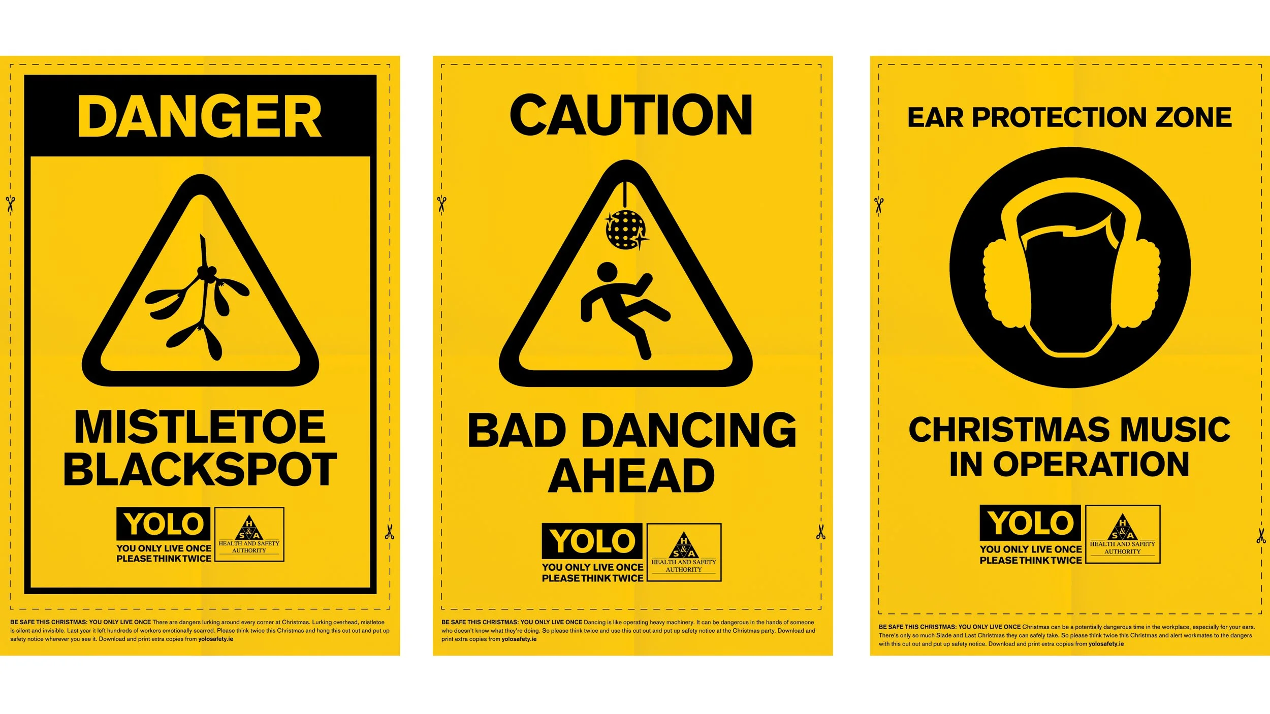 Press executions, designed to look like safety advisory messages, can be cut out and displayed in the workplace during the Christmas period.